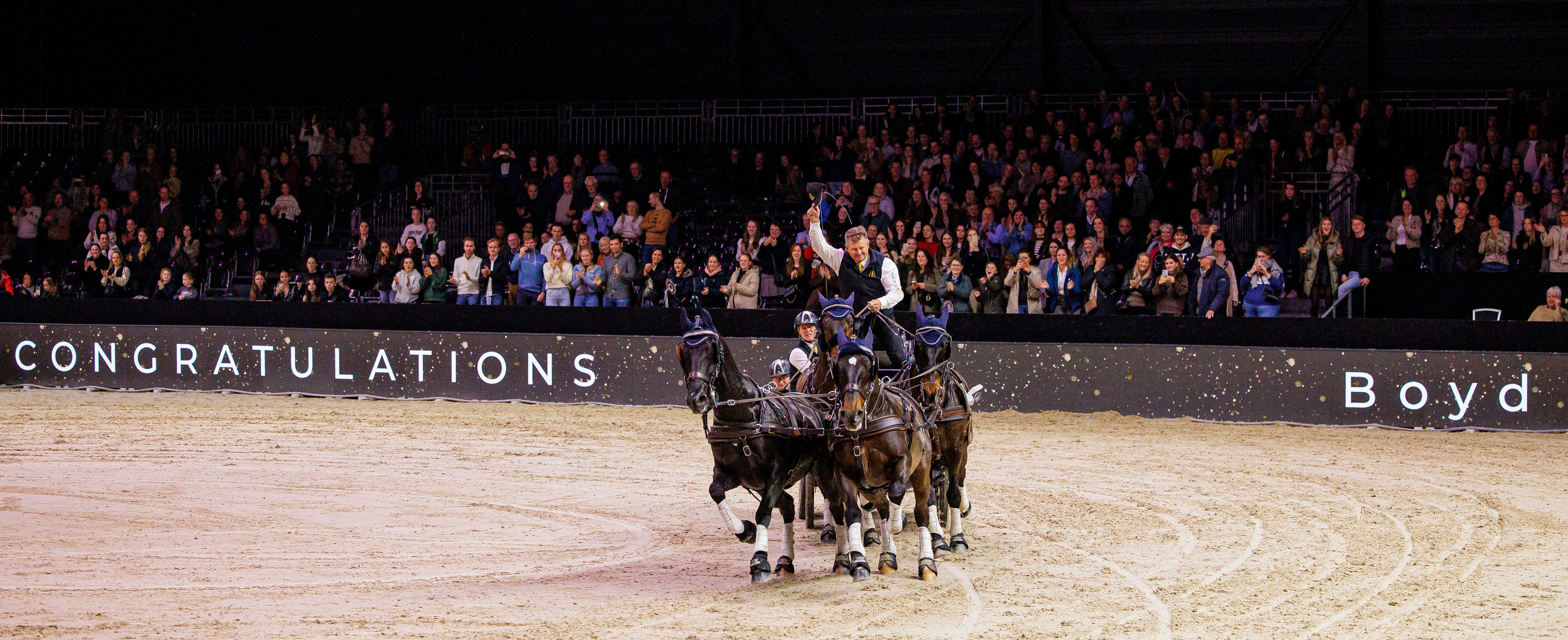 Using two different horses from his winning combination in Lyon (FRA) last week, Boyd seemed to be coming from behind in Maastricht. A ball at the bridge in his first round and slower times than Bram in both rounds meant that he finished in second place. As both Boyd and Bram were the wild card entries, they were in the early order on Friday night, with Bram first out and laying an untouchable challenge with his well-judged, clear round in 160.22. Glenn Geert (BEL) joined them in the drive-off, but the night belonged to Bram with his win in 141.02 ahead of Boyd’s 143.08.
